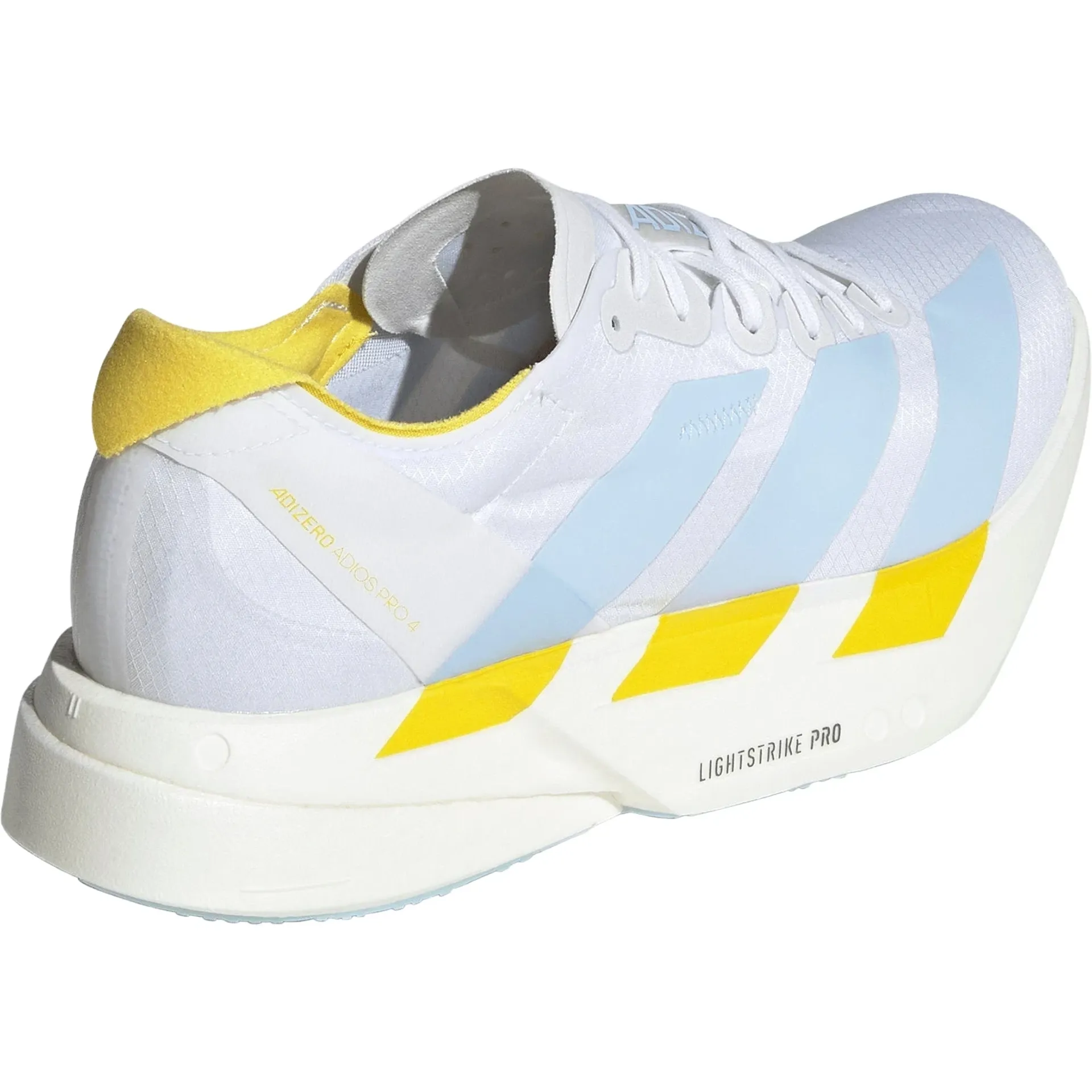 Question(s) answered about Adidas Adizero Adios Pro 4 Women's Running Shoes - White/Blue/Yellow