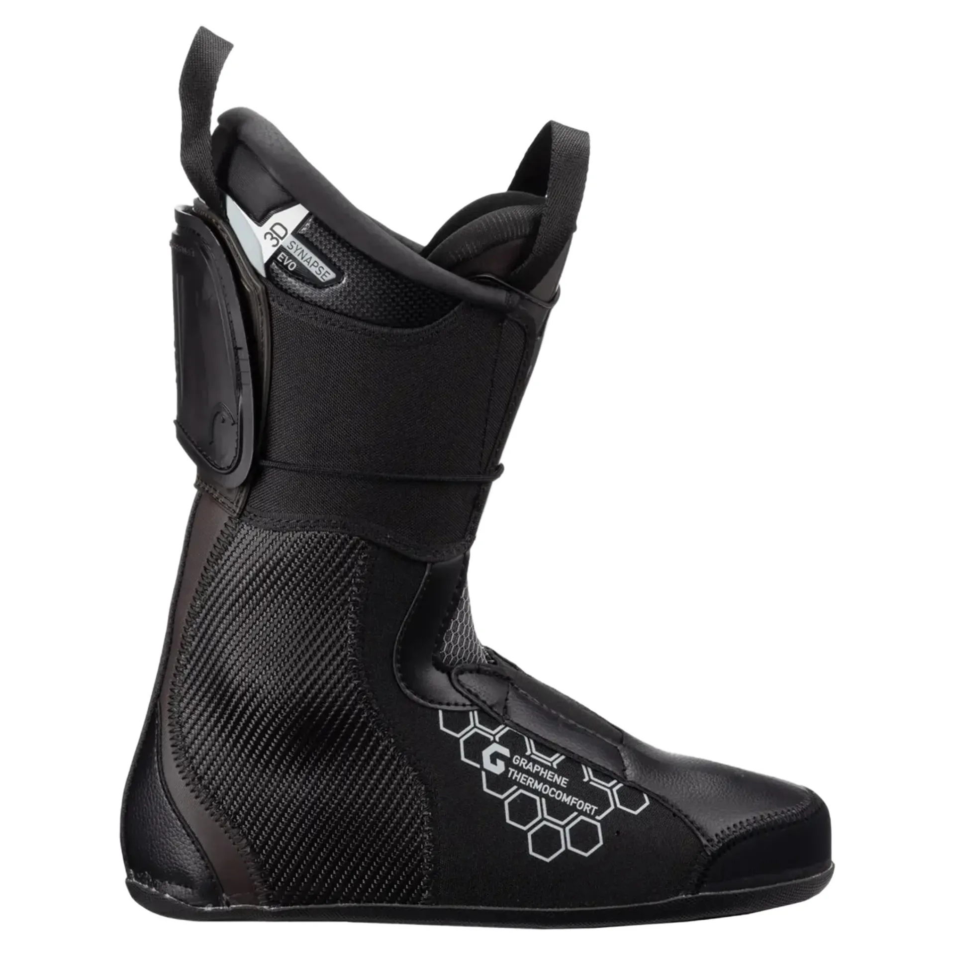 The bi-injected shell features a stiffer plastic frame for on-snow performance and softer plastic over the foot for enhanced footwrap.