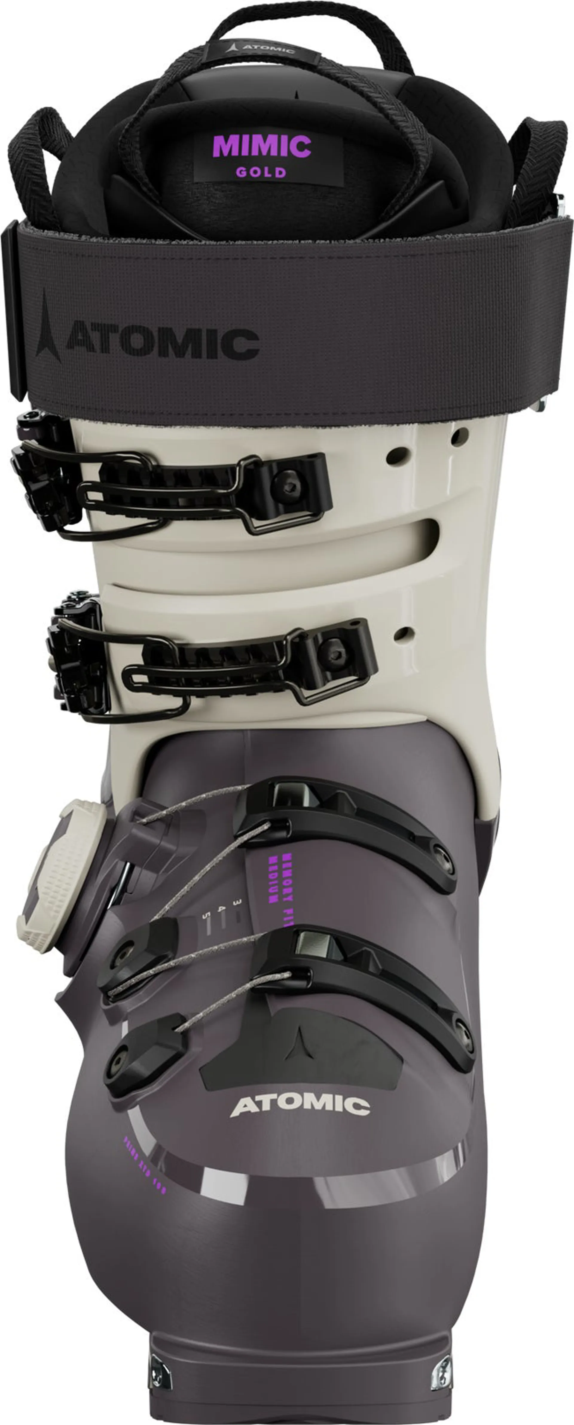This freeride touring boot has a medium 105 flex and comes in a 100mm last that fits medium-width feet. Built using next-generation Prolite, the shell starts slim and adds structural reinforcements to key areas for powerful downhill performance. A micro-adjustable BOA® Fit System wraps the lower foot for a precise fit. A Mimic Gold liner comes pre-shaped around the heel and ankle and can be heat-molded to match your physiology. In-store Memory Fit offers heat shaping of cuff and shell for a custom fit. Natural movement for hiking comes from 54° range of motion in the cuff. This boot comes with Free/Lock 4.5, Atomic’s most sturdy ski-walk mechanism with adjustable forward lean.